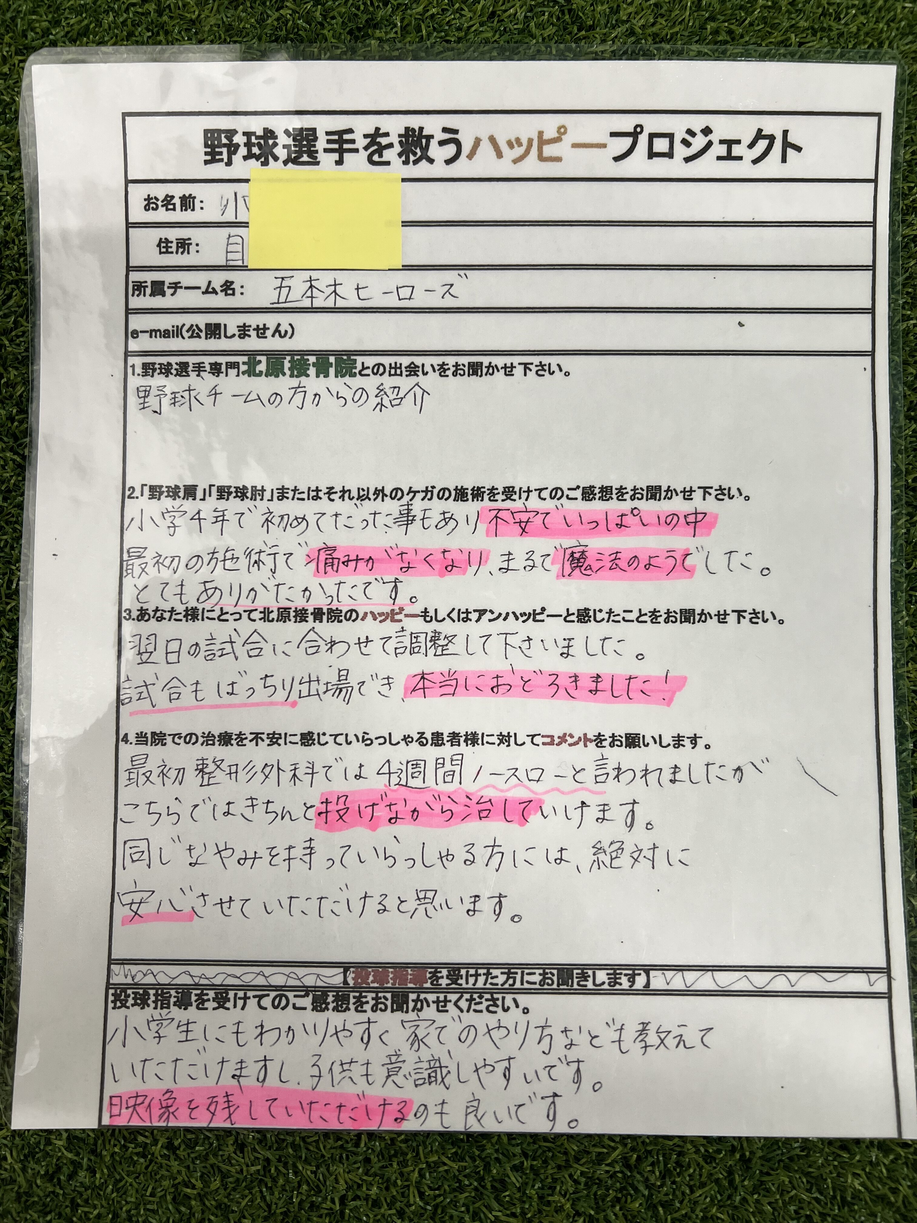 患者様より、痛みが無くなり試合に出れるようになった報告を聞くのが1番の嬉しい言葉です。
